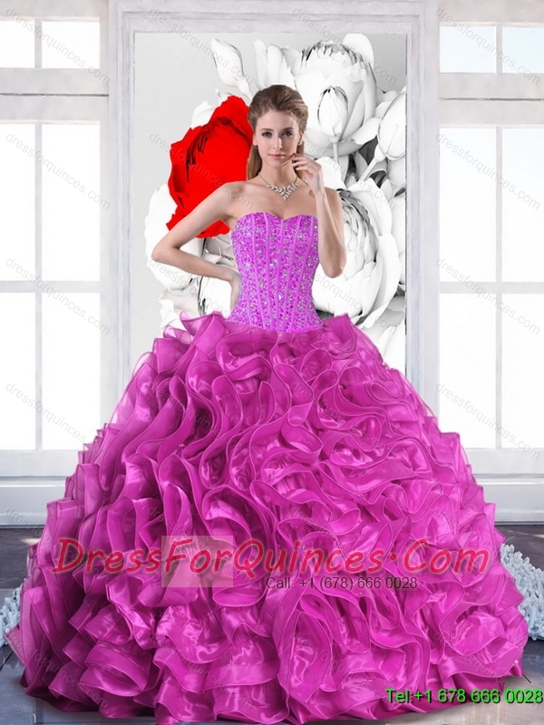 2015 Modest Sweetheart Quinceanera Dresses with Beading and Ruffles