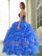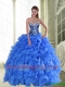 2015 Perfect Beading and Ruffles Strapless Sweet 15 Dresses in Blue