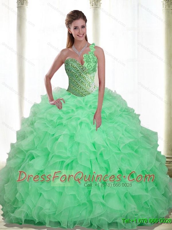 2015 Popular Beading and Ruffles Apple Green Sweet 16 Dresses with Sweetheart