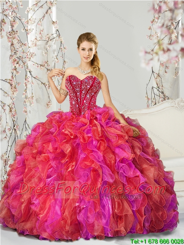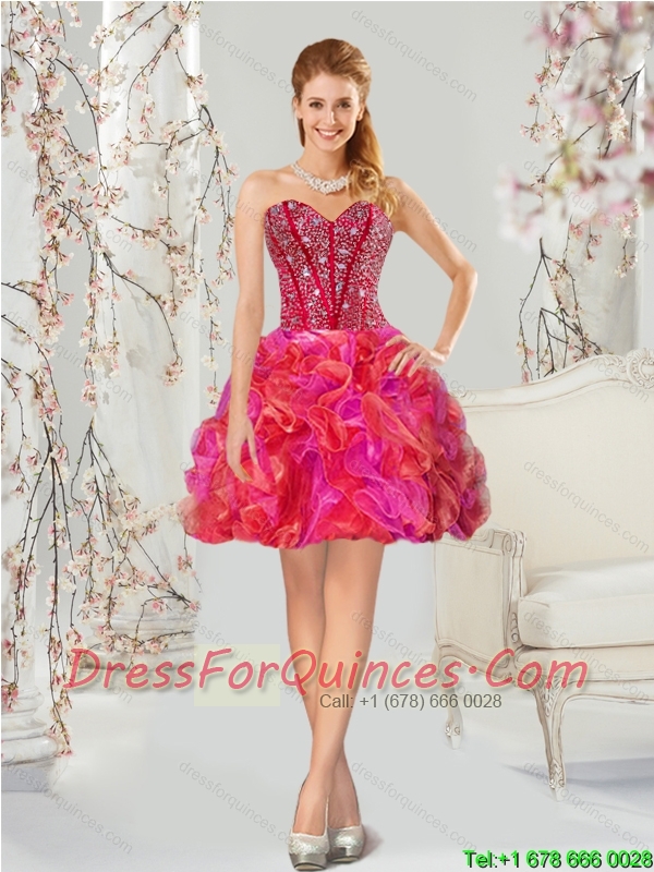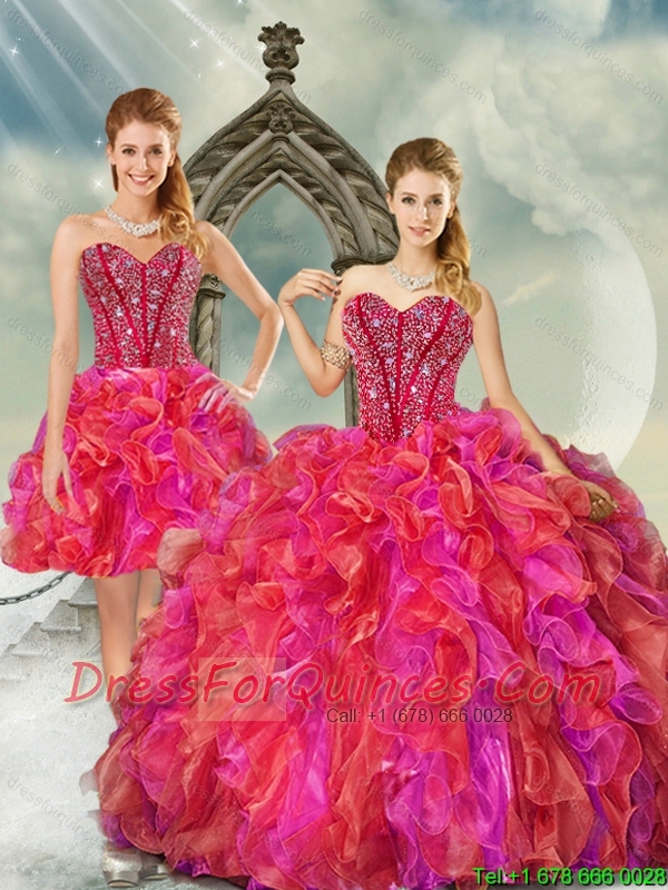 2015 Unique and Detachable Beading and Ruffles Multi Color Quince Dresses