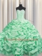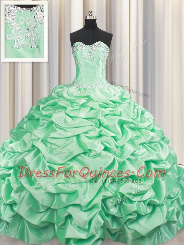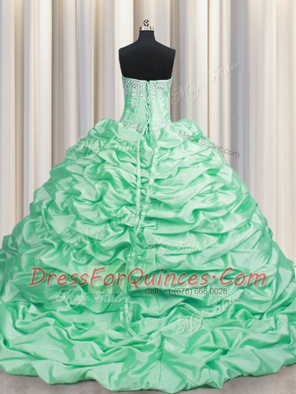 Adorable Apple Green Taffeta Lace Up Sweetheart Sleeveless With Train Ball Gown Prom Dress Brush Train Beading and Pick Ups