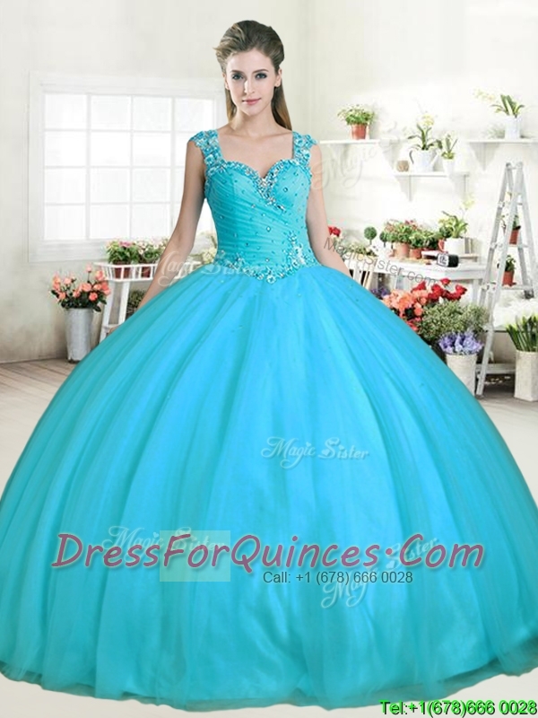 Affordable Aqua Blue Tulle Quinceanera Dress with Beading
