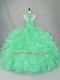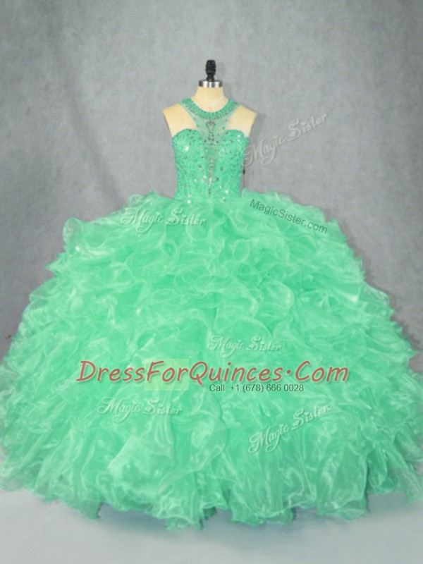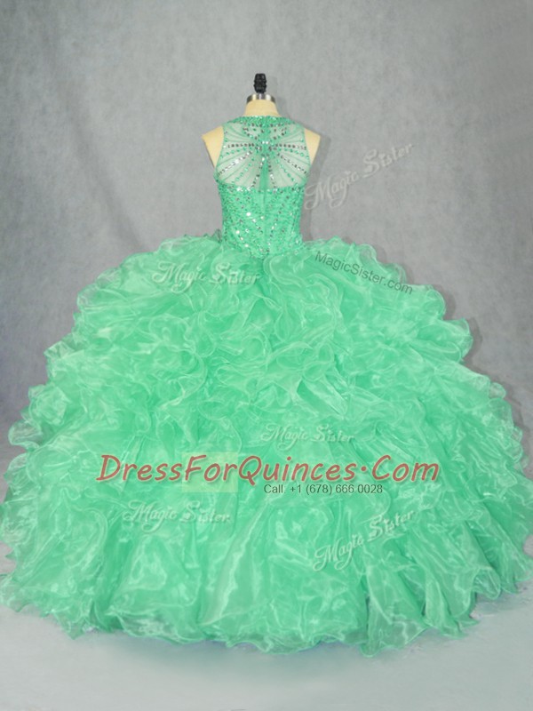 Apple Green Ball Gowns Scoop Sleeveless Organza Floor Length Zipper Beading and Ruffles 15 Quinceanera Dress