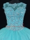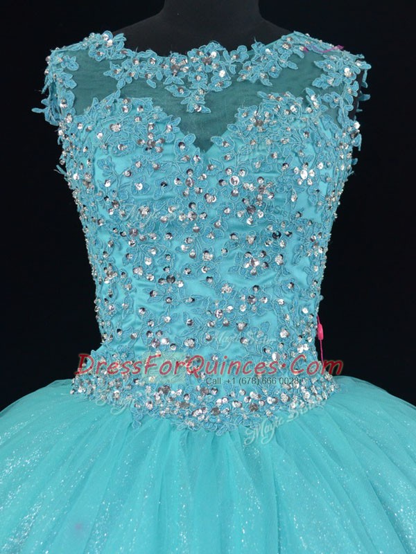 Aqua Blue Vestidos de Quinceanera Sweet 16 and Quinceanera with Beading and Lace Scoop Sleeveless Lace Up