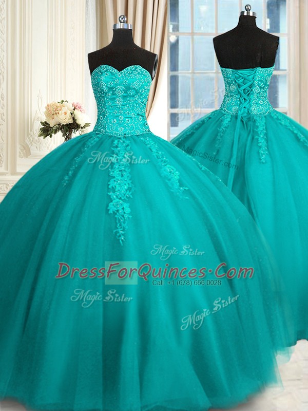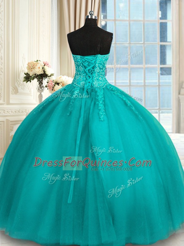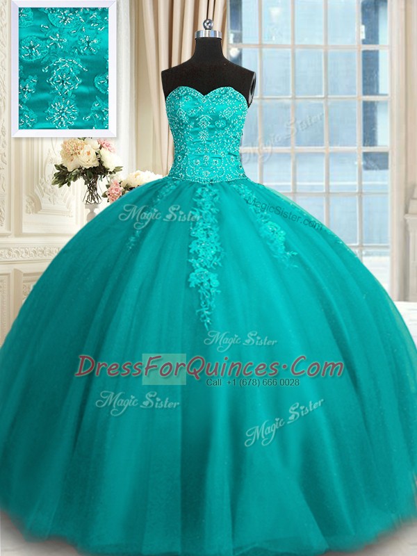 Ball Gowns Quinceanera Dress Teal Sweetheart Tulle Sleeveless Floor Length Lace Up