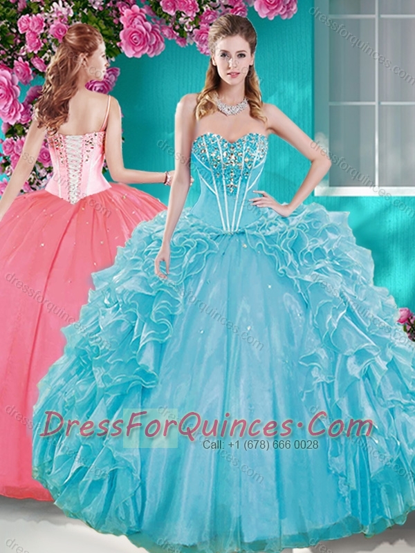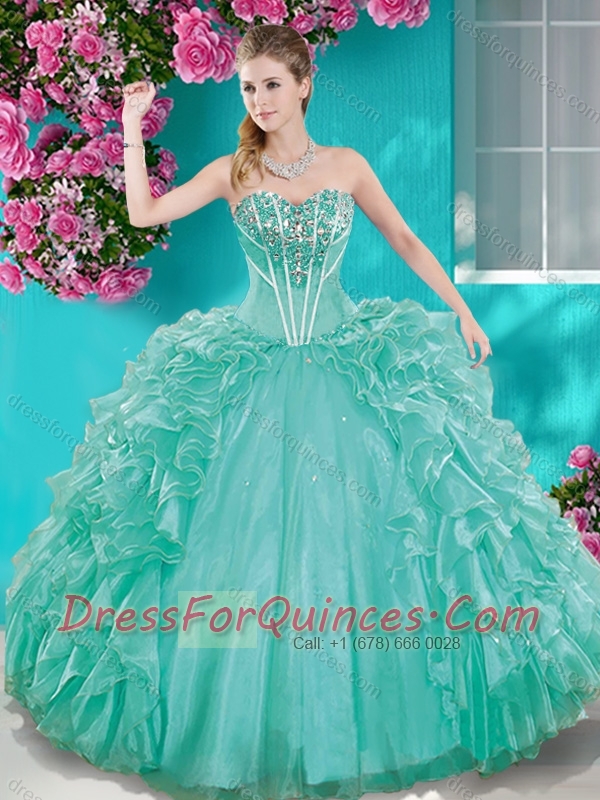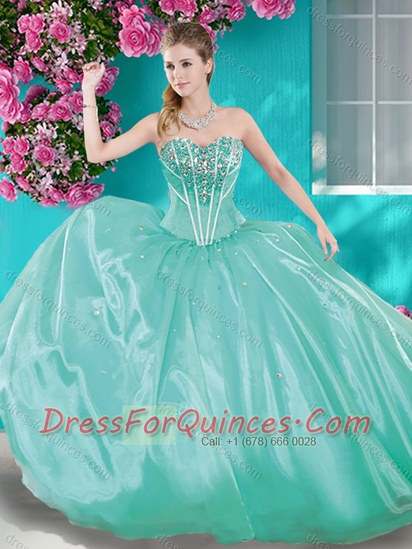 Beaded Bodice Aqua Blue Quinceanera Gown with Removable Skirt