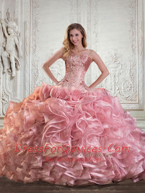 Beading and Ruffles Strapless Baby Pink Dress For Quince