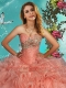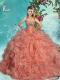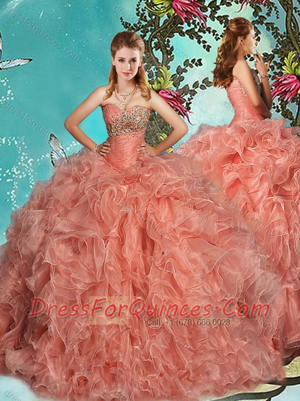Beautiful Brush Train Beaded and Ruffled Quinceanera Gown in Organza