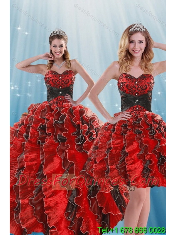 Beautiful Multi Color Beading and Ruffles Quince Dresses for 2015