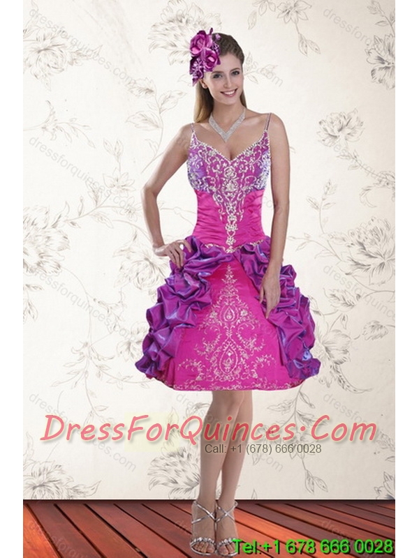 Beautiful Pick Ups and Embroidery Multi Color 2015 Quinceanera Dresses with Sweep Train