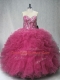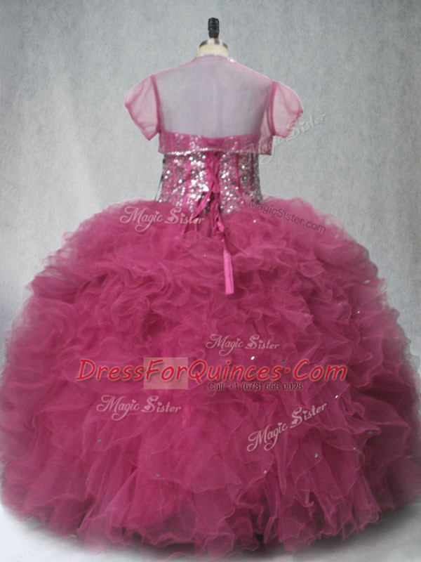 Beautiful Sleeveless Floor Length Beading and Ruffles Lace Up Sweet 16 Dresses with Lilac