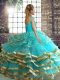 Beautiful Sleeveless Tulle Floor Length Lace Up 15 Quinceanera Dress in Green with Beading and Ruffled Layers