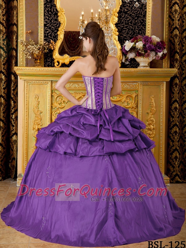 Beautiful Sweet 16 Dresses In Purple Ball Gown Strapless With Appliques Taffeta