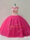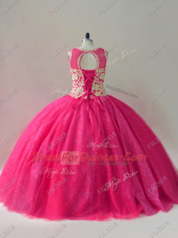 Best Floor Length Hot Pink Sweet 16 Quinceanera Dress Scoop Sleeveless Lace Up