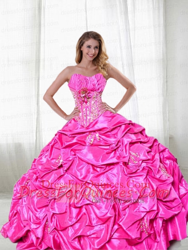 Best Seller Hot Pink Appliques and Pick Ups Quincenera Dress