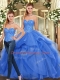 Blue Ball Gowns Organza Sweetheart Sleeveless Beading and Ruffles Floor Length Lace Up Ball Gown Prom Dress