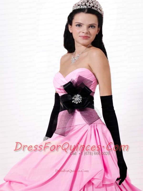 Cheap Bowknot and Ruching Taffeta Sweet 16 Dress in Pink