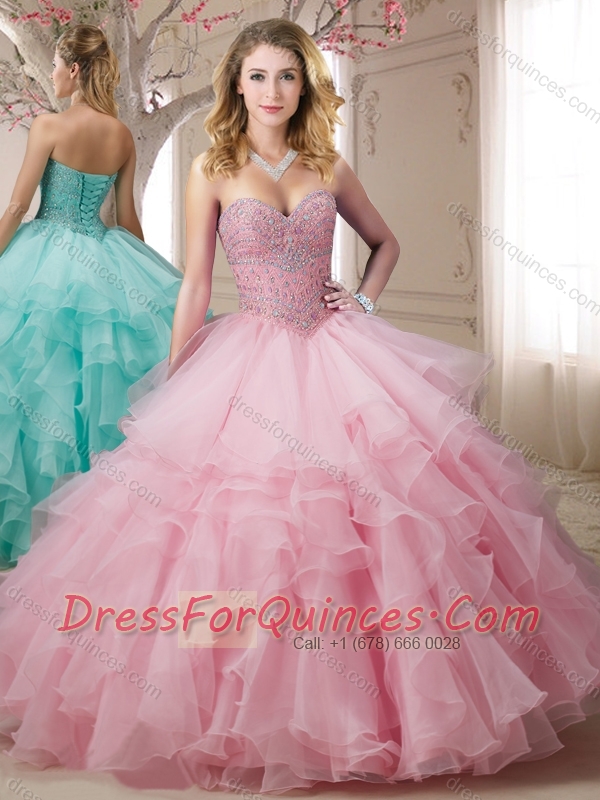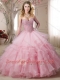Cheap Really Puffy Beaded and Ruffled Baby Pink Quinceanera Dress