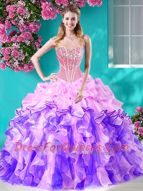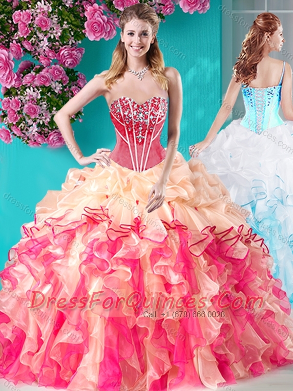 Colorful Ball Gown Sweetheart Quinceanera Dress with Rhinestones and Beading