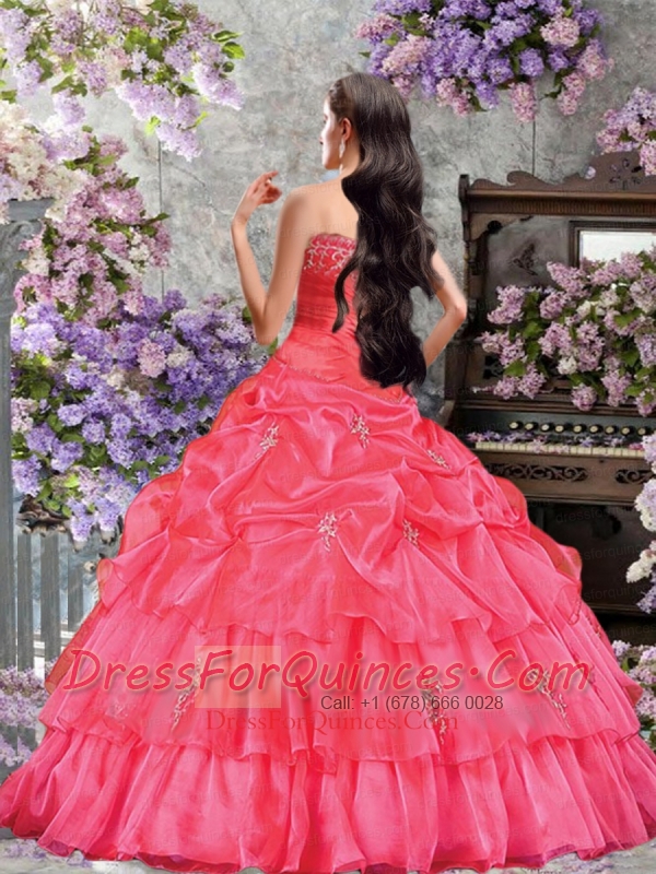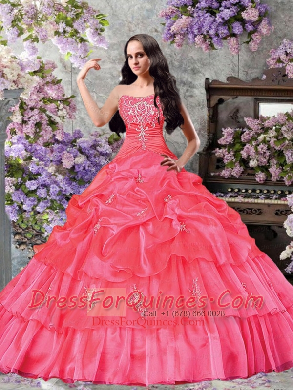 Custom Made A-line Strapless Pick-ups and Ruffles Watermelon Red Sweet 16 Dresses for 2014