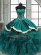 Custom Made Teal Organza Lace Up Sweetheart Sleeveless Floor Length Quinceanera Dress Beading and Ruffles