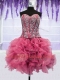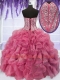 Cute Four Piece Pink Organza Lace Up Quinceanera Dress Sleeveless Floor Length Ruffled Layers and Sequins