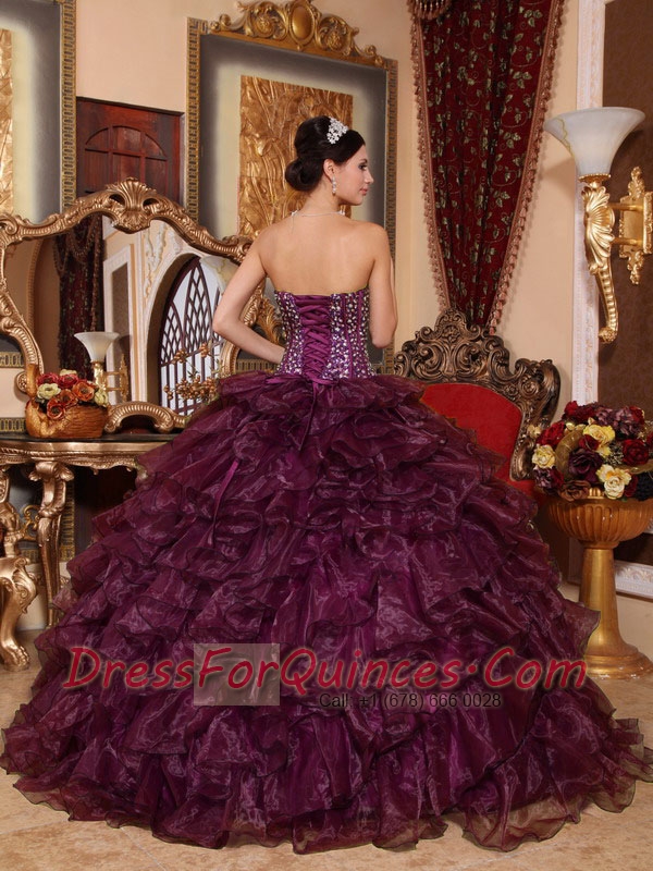 Dark Purple Ball Gown Sweetheart Floor-length Organza Sequins For Sweet 16 Dresses