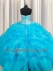 Dynamic Baby Blue Sleeveless Organza Lace Up 15th Birthday Dress for Military Ball and Sweet 16 and Quinceanera