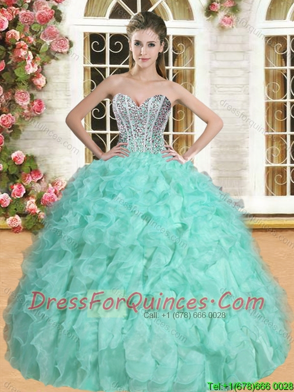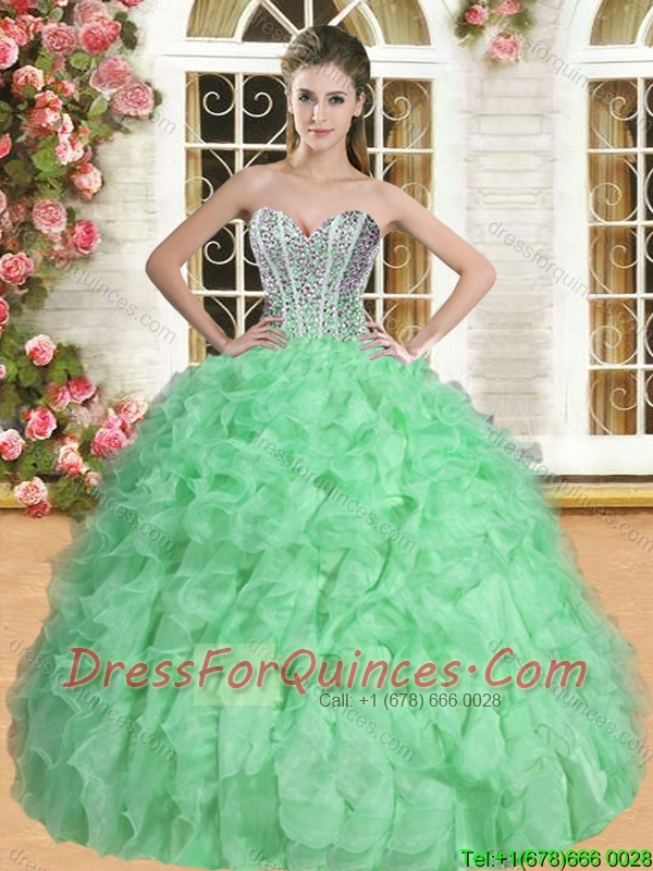 Elegant Spring Green Quinceanera Dress with Beading and Ruffles for Spring