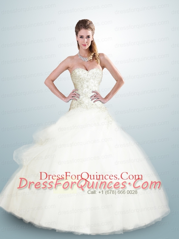 Exclusive Sweetheart Beading and Appliques Quinceanera Dress in White