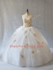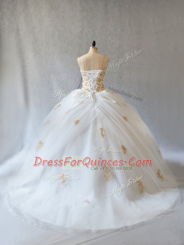 Fashionable Sleeveless Tulle Brush Train Lace Up Sweet 16 Quinceanera Dress in White with Appliques