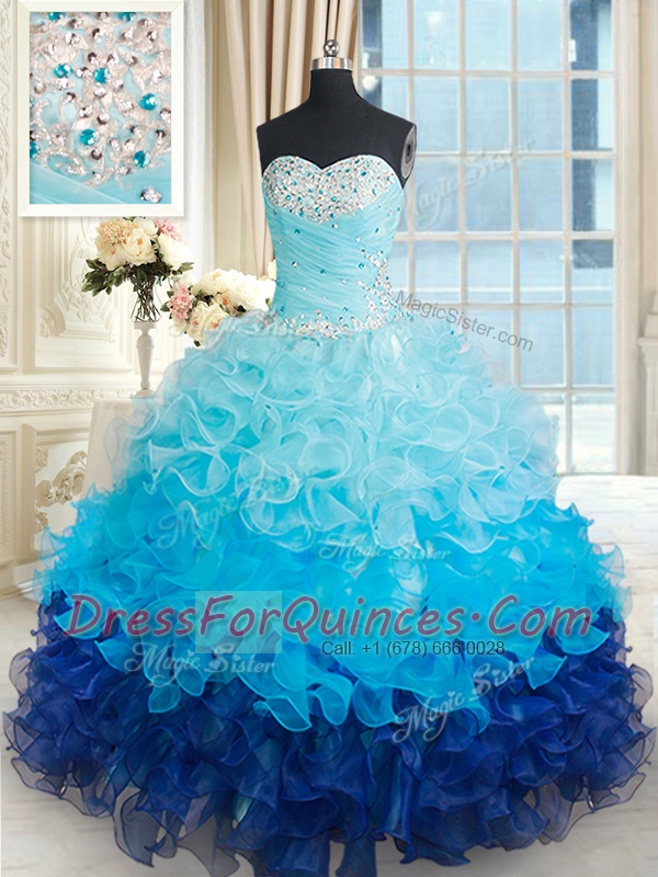 Fitting Multi-color Ball Gowns Beading and Ruffles Vestidos de Quinceanera Lace Up Organza Sleeveless Floor Length