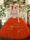 Floor Length Red Quinceanera Gowns Tulle Sleeveless Beading and Ruffles
