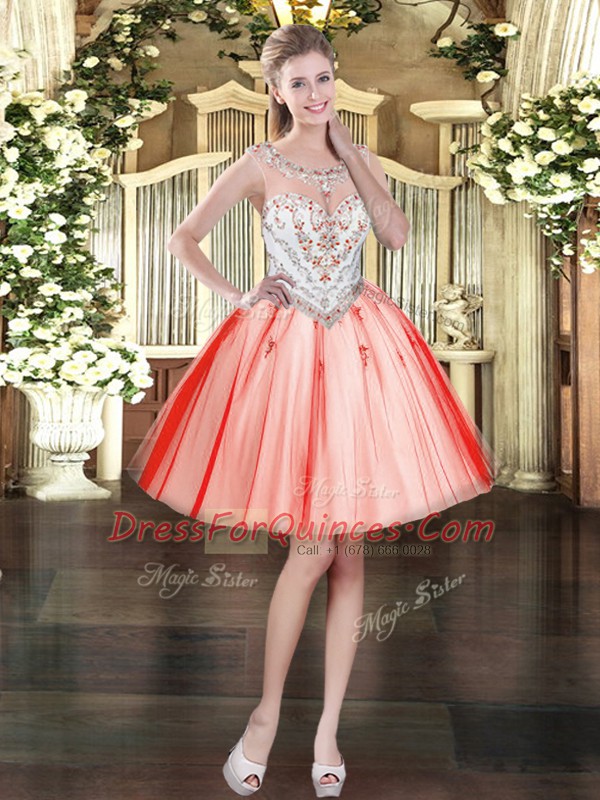Floor Length Red Quinceanera Gowns Tulle Sleeveless Beading