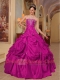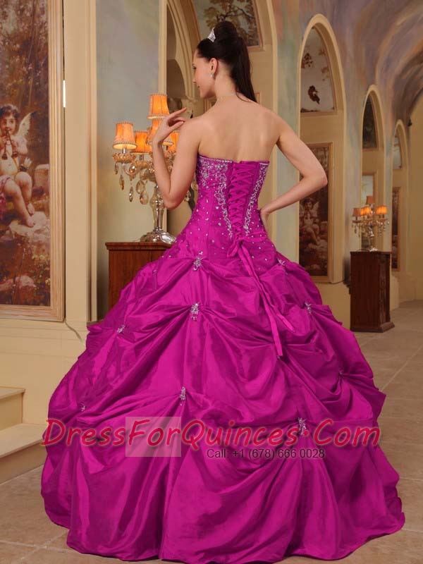 Fuchsia Ball Gown Strapless Taffeta With Beading and Embroidery For Sweet 16 Dresses