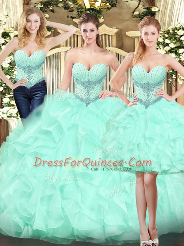 Gorgeous Ball Gowns Quinceanera Gown Apple Green Sweetheart Organza Sleeveless Floor Length Lace Up