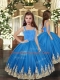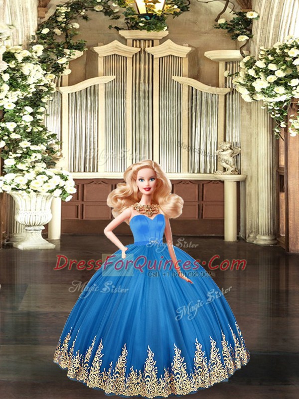 Gorgeous Blue Ball Gowns Sweetheart Sleeveless Tulle Floor Length Lace Up Embroidery Quinceanera Dress