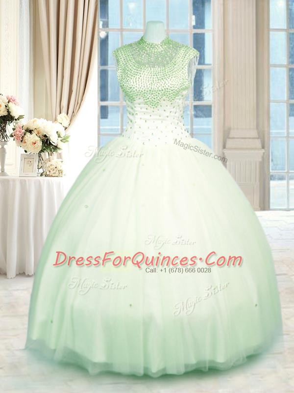Green Sleeveless Tulle Zipper 15th Birthday Dress for Military Ball and Sweet 16 and Quinceanera