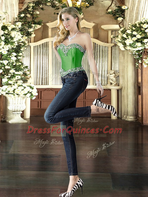 Green Three Pieces Beading and Ruffles Quinceanera Gown Lace Up Organza Sleeveless Floor Length