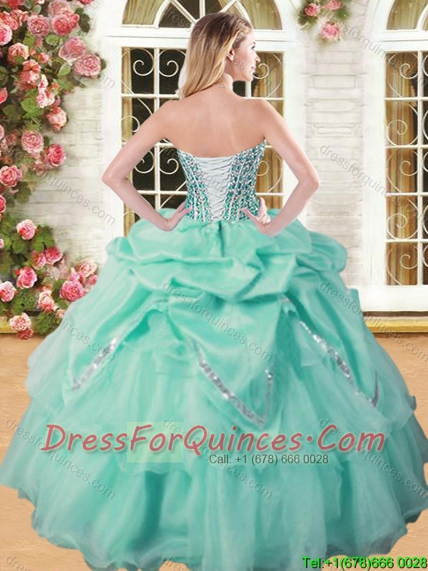 Inexpensive Beaded and Pick Ups Quinceanera Dress in Apple Green