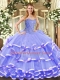 Lavender Sleeveless Floor Length Beading and Ruffled Layers Lace Up Quinceanera Dress