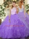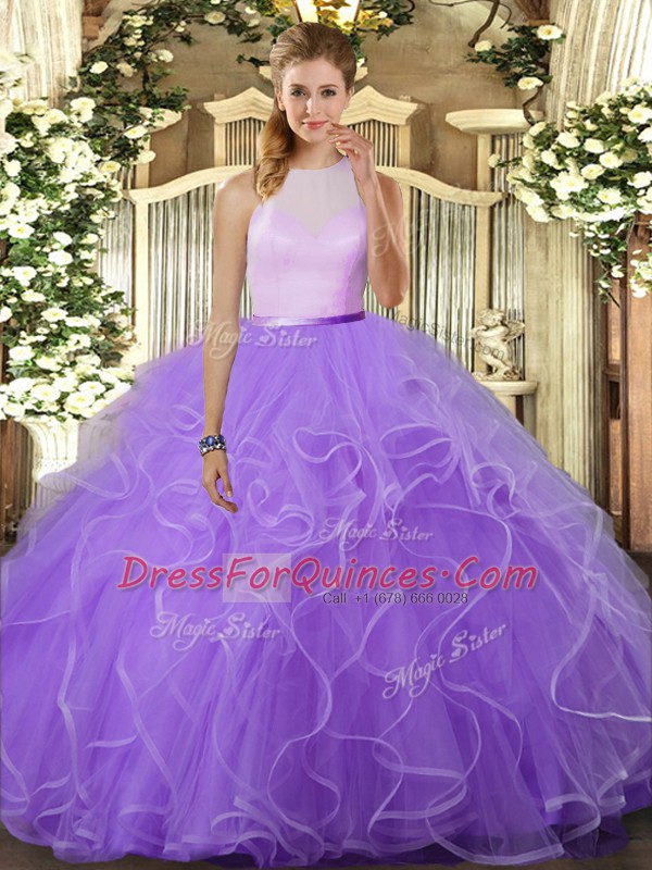 Lavender Sleeveless Floor Length Ruffles Backless Ball Gown Prom Dress