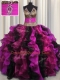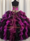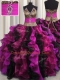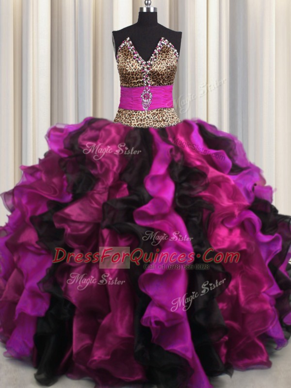 Leopard V Neck Sleeveless Beading and Ruffles Lace Up 15th Birthday Dress
