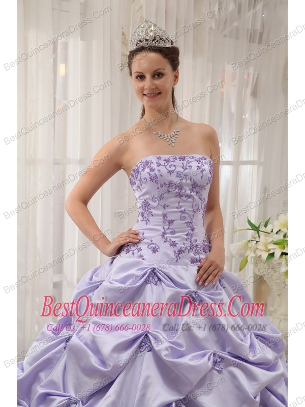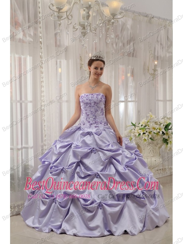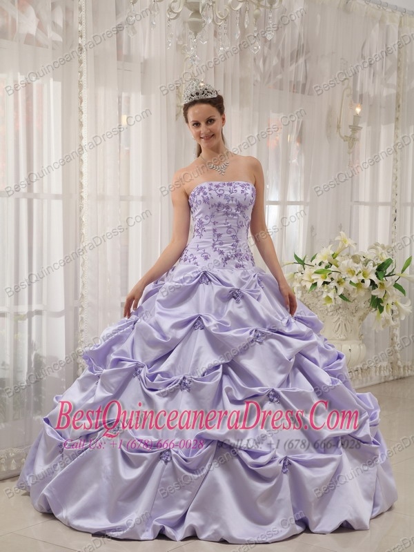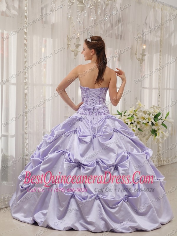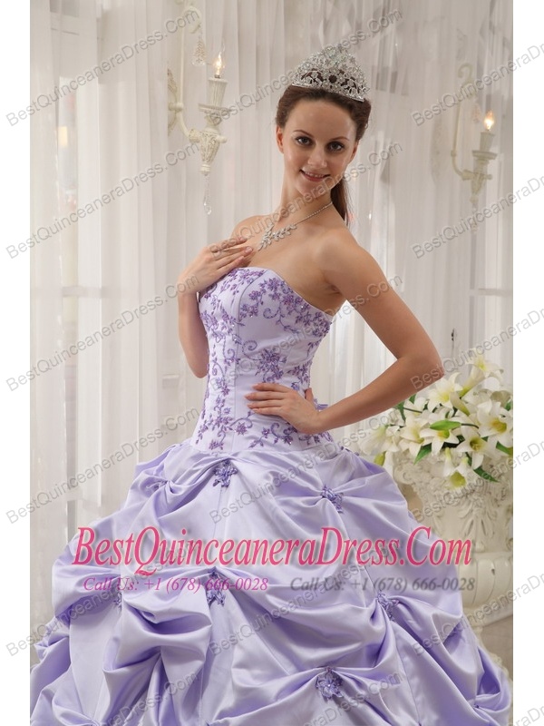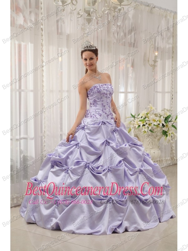 Lilac Ball Gown Strapless Floor-length Taffeta Appliques Sweet 16 Dress