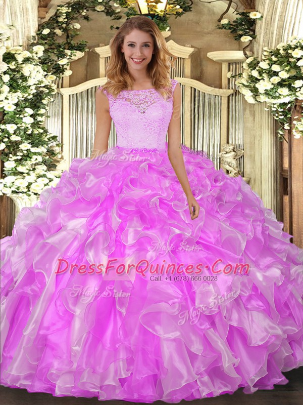 Lilac Sleeveless Organza Clasp Handle Quinceanera Gown for Military Ball and Sweet 16 and Quinceanera