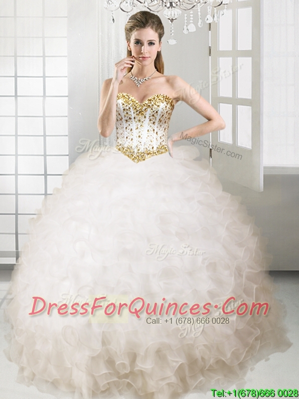 Lovely Big Puffy White Quinceanera Dress with Beading and Ruffles