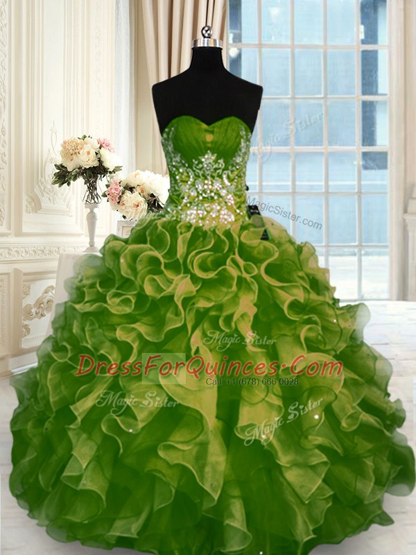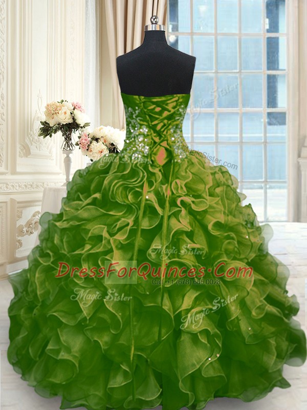 Low Price Olive Green Lace Up Sweetheart Beading and Ruffles Quinceanera Gowns Organza Sleeveless