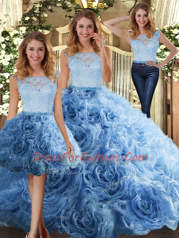 Low Price Scoop Sleeveless Fabric With Rolling Flowers Sweet 16 Dress Lace Zipper
