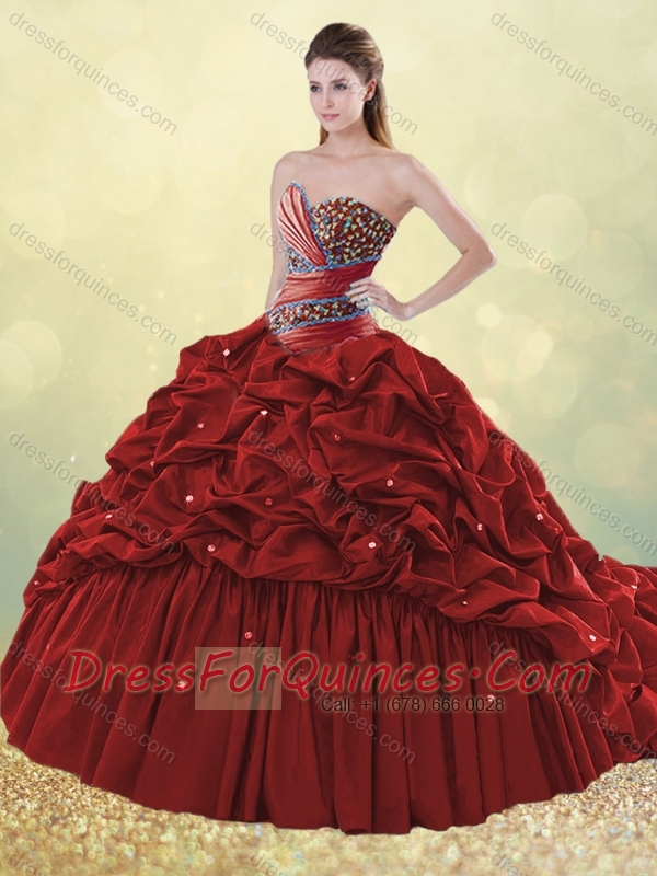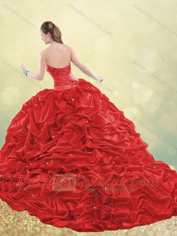 Luxurious Brush Train Taffeta Bubble Sweet 16 Dress in Turquoise