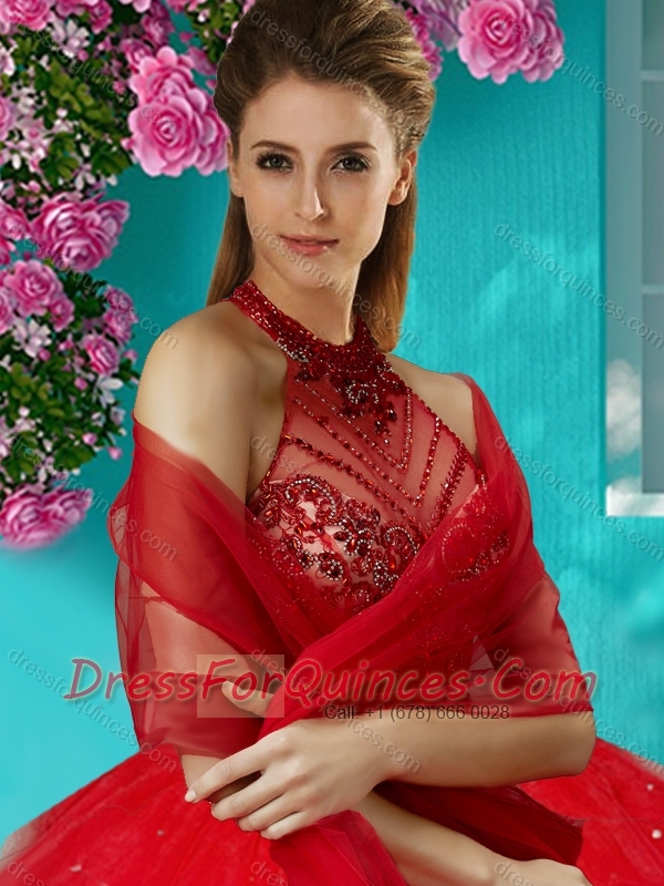 Luxurious See Through Halter Top Quinceanera Dress with Beading and Appliques